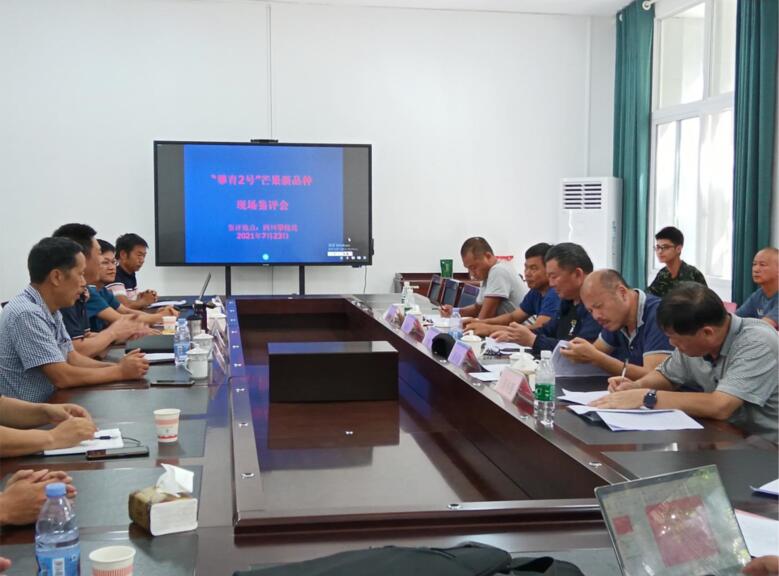 根據(jù)攀枝花市農(nóng)林科學(xué)研究院等單位申請,2021年7月22-23日,全國熱帶作物品種審定委員會組織芒果鑒評專家組,在四川省攀枝花市對該單位申報的‘攀育2號’芒果新品種進行了現(xiàn)場鑒評。