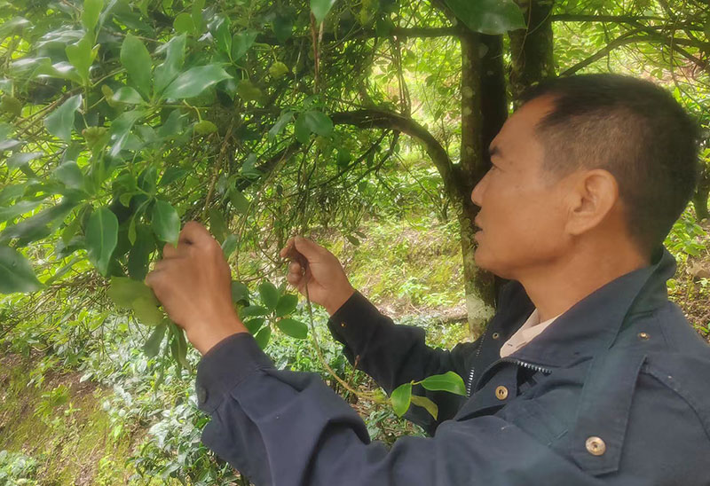 作播村平均海拔在1200米左右,源于土壤、氣候等優(yōu)勢,為發(fā)展八角產業(yè)創(chuàng)造了得天獨厚的自然條件?!?020年,村里種的八角樹染上了炭疽病,全村223戶種植戶種植的八角不同程度受災,掛果期的八角發(fā)黑脫落。”作播村黨總支書記李前??丛谘劾锾墼谛睦?。