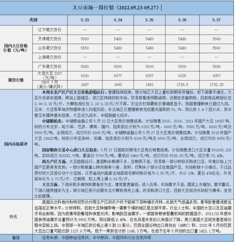 天然橡膠、大豆、玉米市場(chǎng)一周行情(2022.05.23-05.27)