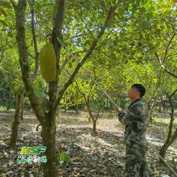“終于有人來收購我的波羅蜜了,之前看著它們爛在地里,很心痛。”中坤農(nóng)場公司黃嶺分場七隊(duì)波羅蜜種植戶唐海相看著海墾果蔬集團(tuán)的工作人員小心翼翼地將成熟的波羅蜜采摘下來放上運(yùn)輸車,開心極了。