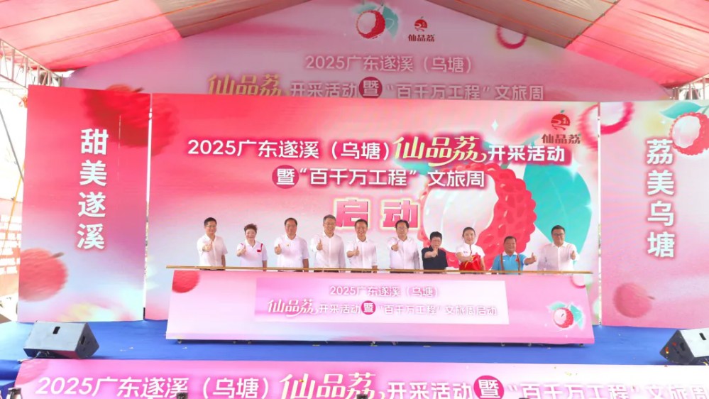 ▲廣東遂溪(烏塘)仙品荔開采活動(dòng)暨“百千萬(wàn)工程”文旅周啟動(dòng),領(lǐng)跑廣東荔枝銷售“第一棒”。