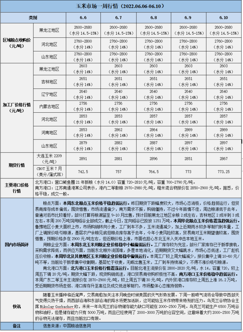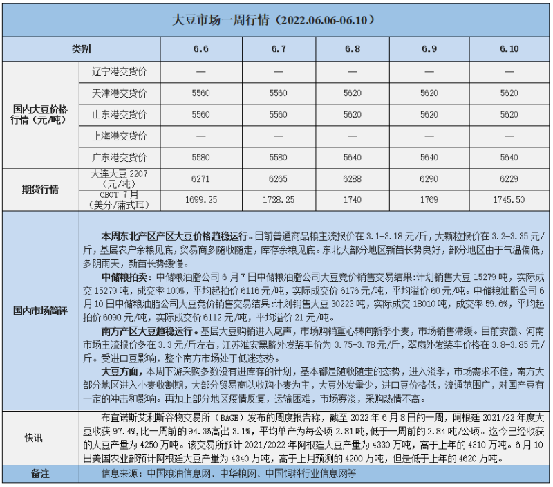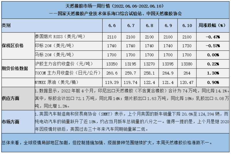 天然橡膠、大豆、玉米市場一周行情(2022.06.06-06.10)