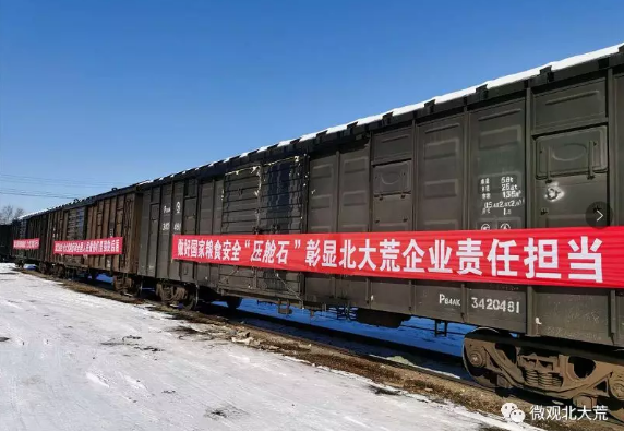 伴隨著一聲火車汽笛長鳴,2月14日下午15時,編掛49輛,滿載3000噸龍江大米的貨運專列在佳木斯站發(fā)出開往湖北省,這其中有1500噸來自北大荒米業(yè)集團。