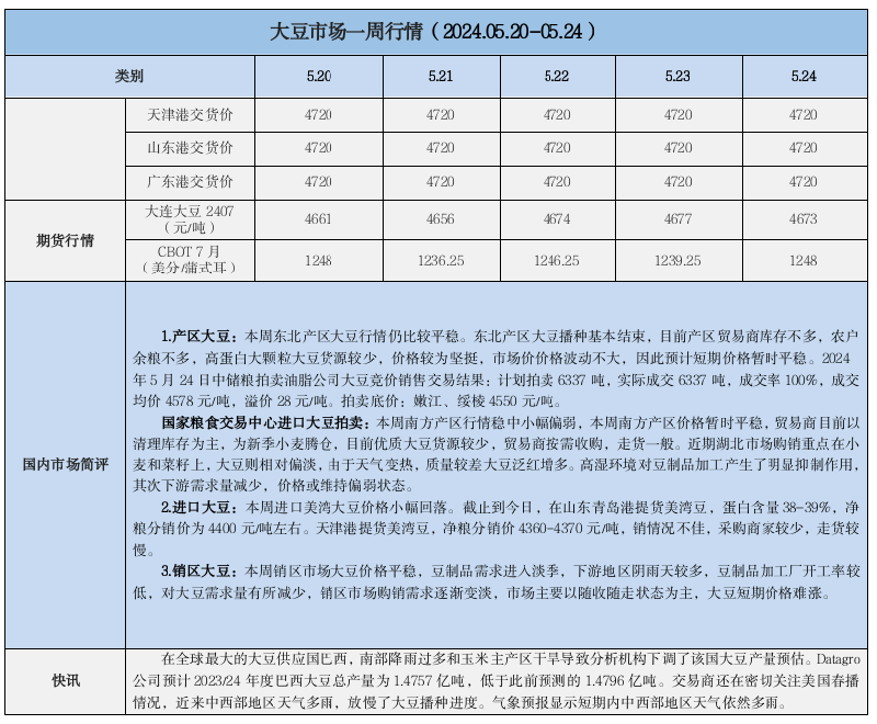 天然橡膠、大豆、玉米市場(chǎng)一周行情(2024.05.20-05.24)