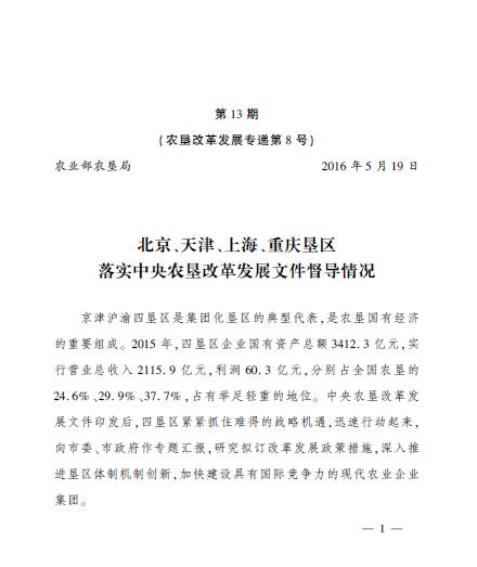 農(nóng)墾情況第13期(農(nóng)墾改革發(fā)展專(zhuān)遞第8號(hào))