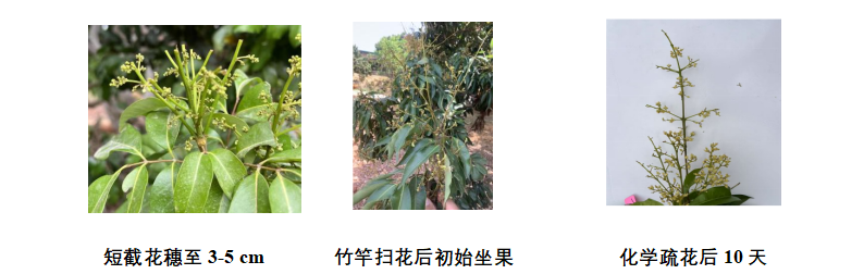 2026年中晚熟荔枝總體呈現(xiàn)中小年成花,但對于花穗超過15cm的果樹仍要進(jìn)行疏花,保證營養(yǎng)供給。疏花方法分為物理疏花和化學(xué)疏花。物理疏花,以仙進(jìn)奉荔枝為例,選用手持剪刀、電動疏花機(jī)疏花,可短截花穗至3~5 cm;選用竹竿掃花,可掃掉4/5的花量。其他品種可參照執(zhí)行。這種方法疏花量可控,風(fēng)險(xiǎn)低,但勞動量大。化學(xué)疏花,可選用 40%乙烯利5000倍液和15%多效唑800倍液混合噴施,或 6%乙氧氟草醚10000倍液和 15%多效唑800倍液混合噴施荔枝花穗。這種方法效率高,但技術(shù)門檻較高,要在當(dāng)?shù)剞r(nóng)技人員或技術(shù)專家的指導(dǎo)下,嚴(yán)格把握用藥濃度和藥量,建議使用前選擇少量樹體進(jìn)行試驗(yàn),確定無藥害后再大面積施用。若遇溫度高、光照強(qiáng)時(shí)要適當(dāng)降低濃度,噴濕即可,不可反復(fù)噴施。