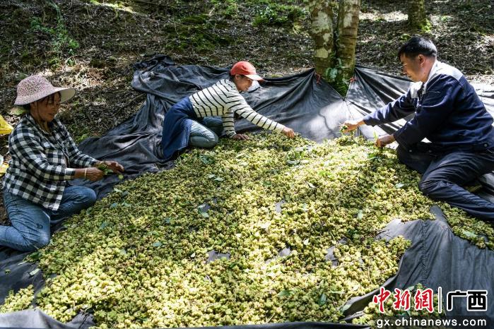 中新網(wǎng)廣西新聞10月25日電(何富德 李佰東)時(shí)下正是八角采收旺季,廣西玉林市興業(yè)縣城隍鎮(zhèn)的山林上,漫山遍野的八角樹掛滿沉甸甸的果實(shí),空氣中彌漫著濃郁的八角清香。