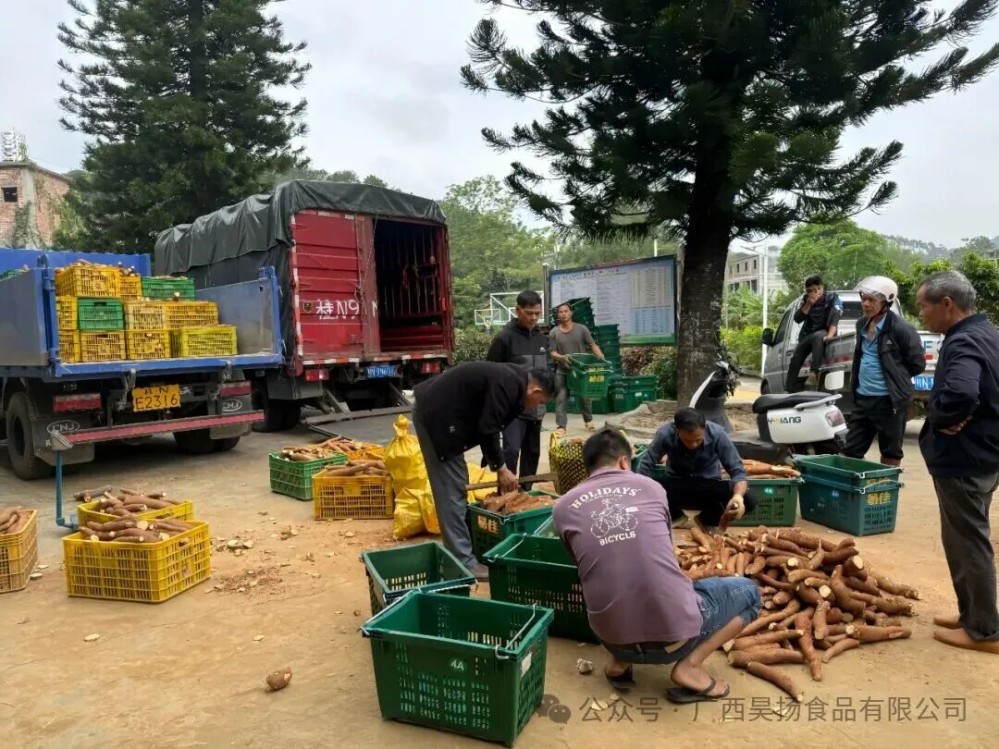 欽州市靈山縣新圩鎮(zhèn)上塘村的木薯收購點(diǎn),黃色的塑料筐里堆滿了肉質(zhì)金黃的黃肉木薯,村干部和農(nóng)戶正忙著稱重、分揀、裝車,一派熱火朝天的豐收景象。這個(gè)曾經(jīng)也為木薯銷路發(fā)愁的村莊,如今靠著電商賦能、企業(yè)的帶動(dòng)以及聯(lián)農(nóng)帶農(nóng)模式,讓小小木薯成了驅(qū)動(dòng)鄉(xiāng)村振興的“新引擎?!?/span>