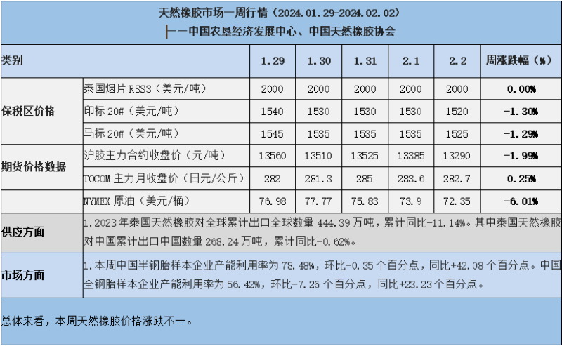 天然橡膠、大豆、玉米市場(chǎng)一周行情(2024.01.29-02.02)
