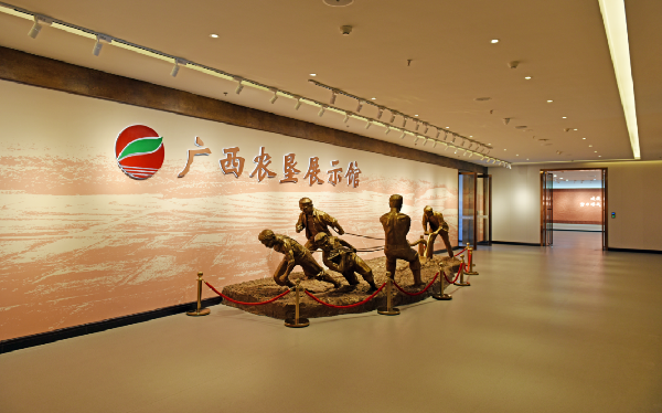 廣西農(nóng)墾展示館是廣西農(nóng)墾慶祝中國共產(chǎn)黨成立100周年和廣西農(nóng)墾建墾70周年的獻(xiàn)禮工程,于2021年10月27日建成開館。展廳面積約1390平方米,陳展實物450件。展館以“傳承紅色基因、牢記初心使命”為主題,分為序廳、憶往昔、看今朝和啟宏圖四大板塊。通過文字、圖片、視頻、投影、實物、雕塑等表現(xiàn)形式,采取平面展陳、文物陳列、歷史場景重現(xiàn)等表現(xiàn)方式和聲、光、電等多種表現(xiàn)手段,歷史與當(dāng)今交織、外延與內(nèi)涵并存、傳統(tǒng)與現(xiàn)代融合,全面、系統(tǒng)、客觀、準(zhǔn)確、生動、簡約地展示廣西農(nóng)墾70年創(chuàng)業(yè)、改革和發(fā)展的歷程,對繼承和發(fā)揚(yáng)農(nóng)墾精神、激勵后人具有重要意義,是廣西農(nóng)墾的一張靚麗文化名片,年均接待1萬人次。