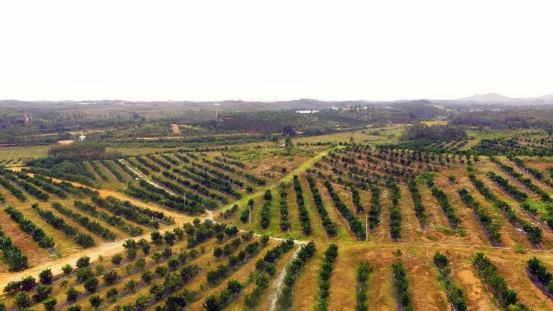 走進那呈饅頭形的山嶺,環(huán)山而植的林帶,一環(huán)扣著一環(huán)地,從山腳纏至山頂。從遠望去,恍如一個巨大的甲狀動物,蹲坐在山地間。環(huán)山種植的紅江橙,以其3×3的株行距,以一個個塔狀,立于梯間。已經(jīng)成熟待收的紅江橙,一串串地掛滿枝梢。果壓樹枝,而使枝杈下垂。從遠處看,恍如珍珠爬上樹梢,如火球在泛紅,如火點在燃放,如睡美人在仰躺,如翡翠在打點......