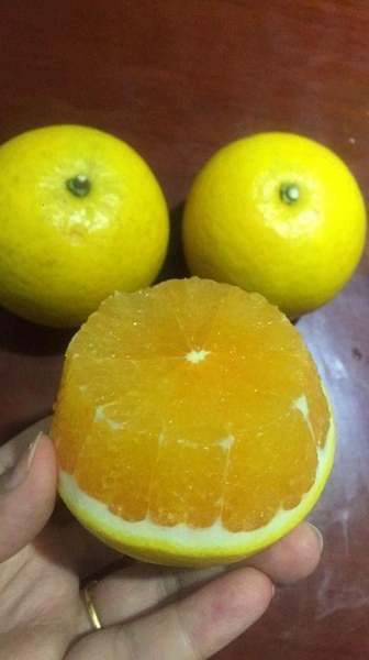 果盆上放的全是紅橙。但可能是紅江橙中構(gòu)不上檔次的次品,因為沒有貼標簽。也可能是別處引種的紅江橙。但家鄉(xiāng)橙無疑了?,F(xiàn)在,我們遠隔萬里,而突遇了家鄉(xiāng)橙,仿如遇到了親人那般,頗感親切而驕傲。