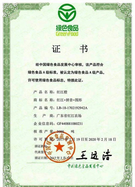紅江橙,是紅江場科技人員,從一棵變異的單體中,通過嫁接促成嵌合體的變異而生成。自1973年投產(chǎn)以來,現(xiàn)已擁有二萬畝的生產(chǎn)基地。目前紅江農(nóng)場以創(chuàng)名牌為中心,規(guī)劃并建立完善的管理系統(tǒng),已擁有獨立的科技隊伍,與獨立的生產(chǎn)基地、試驗基地、培育基地,以及加工與分級包裝生產(chǎn)線。已獲國家頒發(fā)的“綠色食品”標準證書,中國綠色食品A級認證,以及中國農(nóng)業(yè)博覽會名牌產(chǎn)品、廣東省名牌產(chǎn)品、廣東省著名商標。已列入國家的星火計劃,是中國外交部國賓館指定的國賓產(chǎn)品。產(chǎn)品已經(jīng)出口了幾十個國家與地區(qū)。