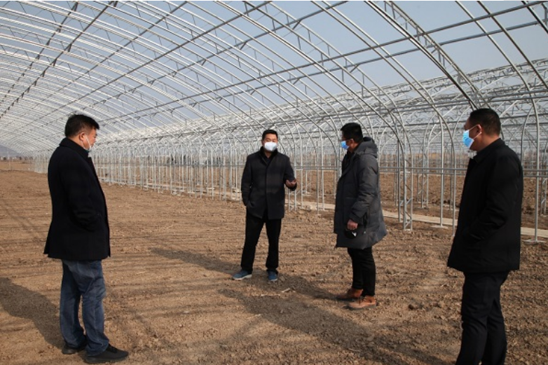圖為云臺農(nóng)場公司主要負責人現(xiàn)場檢查疫情防控期間企業(yè)復工情況