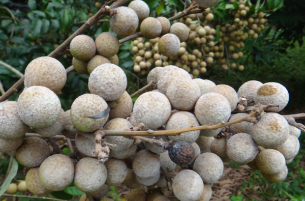 當(dāng)前我國(guó)主產(chǎn)區(qū)廣東和廣西龍眼樹陸續(xù)進(jìn)入果實(shí)膨大期至成熟期,其中粵西已開始采摘或臨近采收期。由于今年夏季前段時(shí)間雨水過(guò)多,特別是粵西受臺(tái)風(fēng)“暹芭”登陸影響,當(dāng)?shù)卦S多龍眼園被水淹浸,濕度過(guò)大,且目前又處于持續(xù)高溫,高溫高濕的天氣條件易導(dǎo)致龍眼白霉病的發(fā)生流行。