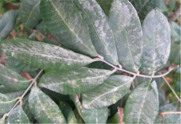 白霉病主要為害接近成熟的龍眼果實(shí)及葉片,嚴(yán)重時(shí)在病果和病葉表面覆蓋一層白色霉?fàn)钗?,?dǎo)致部分果枝干枯、葉片早衰、果實(shí)脫落或果皮暗褐色、果肉變質(zhì)腐爛;中度和輕度發(fā)病的果實(shí),雖果肉未腐爛,但品質(zhì)與風(fēng)味下降(圖1)。受果園地面高濕度和樹冠枝葉密集影響,該病往往先發(fā)生在樹冠中下層枝葉稠密的果穗或葉片上。因此,建議各龍眼產(chǎn)區(qū)主管生產(chǎn)的技術(shù)人員或果園主加強(qiáng)踏查,監(jiān)測(cè)病情發(fā)展,發(fā)病果穗超過(guò)5%的龍眼果園應(yīng)進(jìn)行噴藥防治。果實(shí)發(fā)育距采摘10天以上,可噴灑25%咪鮮胺(施???乳油1500倍液,或45%咪鮮胺(施???水乳劑2000-2500倍液,或43%氟菌•肟菌酯(露娜森)懸浮劑,或60%唑酯•代森聯(lián)(百泰)水分散粒劑 1000-1500 倍,或560克/升嘧菌•百菌清(阿米多彩)懸浮劑1000倍1-2次,間隔7-10天;若發(fā)病龍眼園的果實(shí)接近采收,即距離采摘收獲不足10天,可噴灑25%咪鮮胺(施???乳油1500倍液或45%咪鮮胺(施保克)水乳劑2000-2500倍液1次,確保龍眼果品安全。