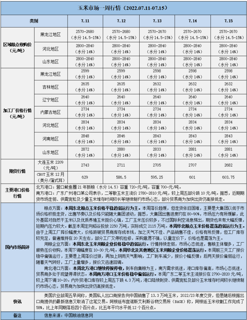 天然橡膠、大豆、玉米市場一周行情(2022.07.11-07.15)