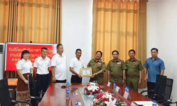 8月5日,老撾國家公安部禁毒委員會主任英崩·占塔翁薩到云南農墾云橡投資有限公司頒發(fā)替代種植“特別貢獻獎”證書。