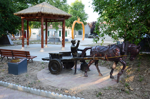 進(jìn)入大院便是奮進(jìn)園,周恩來(lái)總理和幾位墾荒者的巨型雕塑矗立其中。巨雕西面是群體雕塑“周恩來(lái)決策建農(nóng)場(chǎng)”;東面是一條綠樹(shù)掩映的半圓形文化長(zhǎng)廊,展出著農(nóng)場(chǎng)各個(gè)時(shí)期的珍貴照片;南面是“福滿路”,路上錯(cuò)落分布著五個(gè)巨大的蘋果門,每個(gè)門上各有一種糧食作物的圖案,寓意平平安安、五谷豐登。福滿路兩側(cè)立著24節(jié)氣石牌。