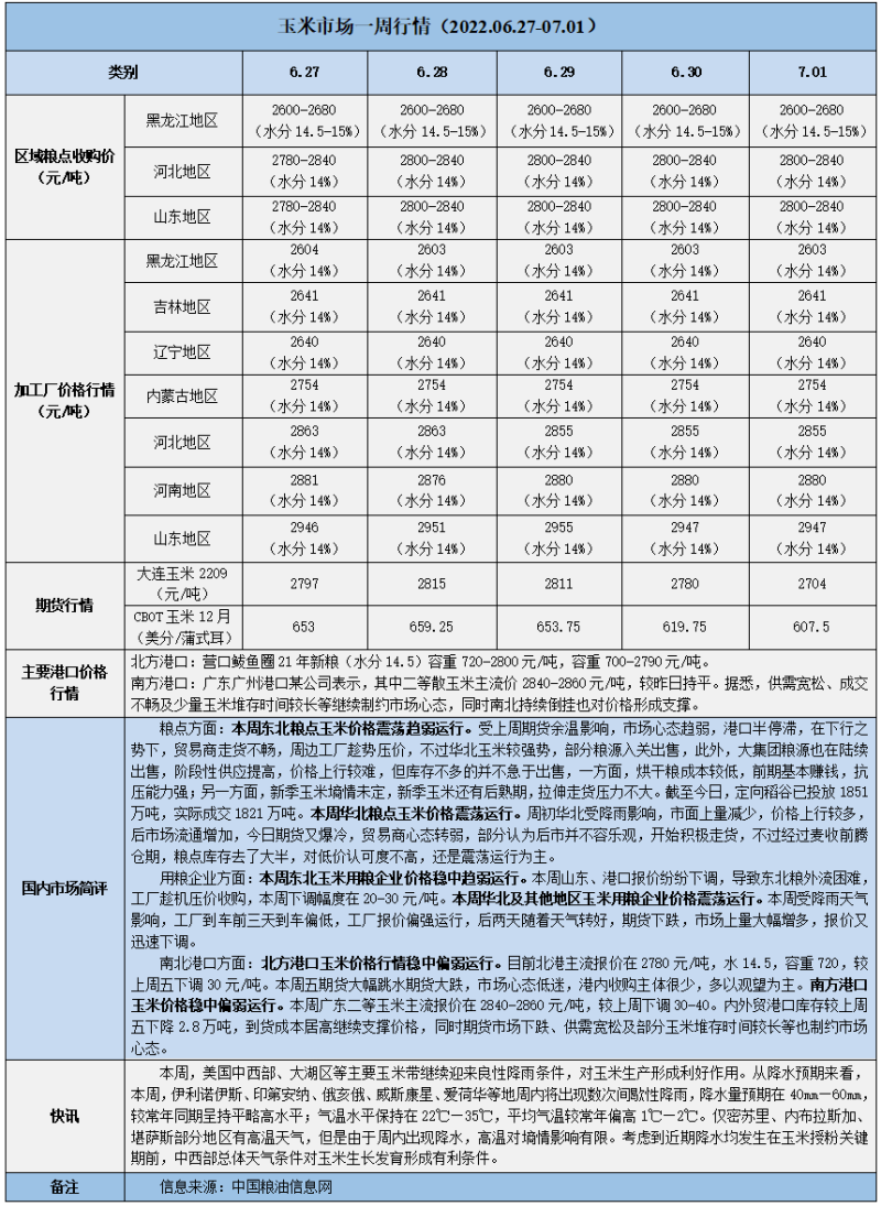 天然橡膠、大豆、玉米市場一周行情(2022.06.27-07.01)