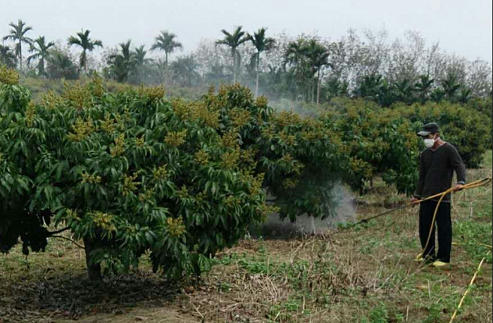 二、成蟲羽化高峰期進行施藥,噴殺荔枝蒂蛀蟲成蟲。推薦使用藥劑為:具有強觸殺作用的擬除蟲菊酯,或5%啶蟲脒乳油,或荔豐保,使用所推薦劑量進行內膛噴霧防治(見下圖)。