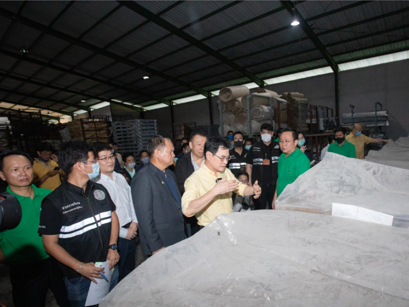 在工廠車間,朱林副總理參觀了公司生產(chǎn)線和公司成品倉庫,對泰華公司濃縮乳膠的二維碼追溯系統(tǒng)表示贊賞,對公司的5L等產(chǎn)品通過諸多國際知名企業(yè)認證點贊,并提出泰國應(yīng)加大本地的橡膠使用量,積極拓展海外的銷售渠道,提升泰國天然橡膠的知名度和美譽度。