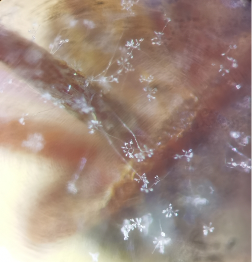 圖2 荔枝小花保濕長出白色霉狀物
