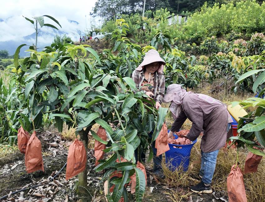 村民正在采摘成熟的芒果。毛輝攝