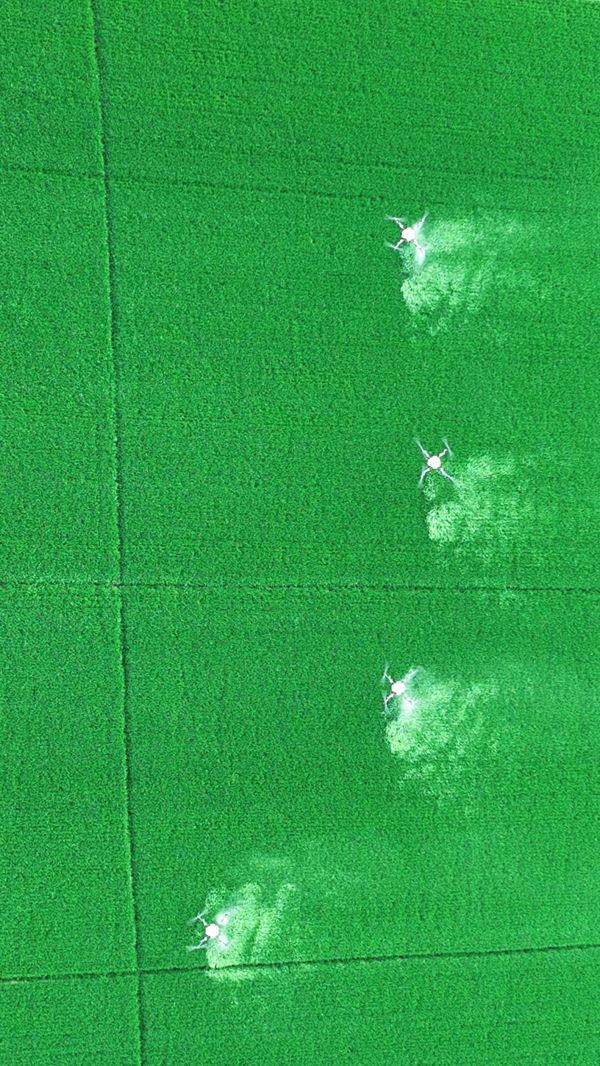 方邱湖農(nóng)場全面采用無人機進行“一噴三防”作業(yè),確保防治工作快速、精準、安全。(廉金龍)
