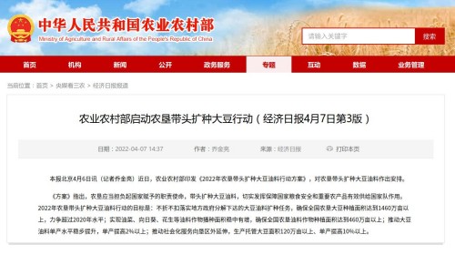 2.技術(shù)推廣處協(xié)助部農(nóng)墾局完成全年春播、夏收夏種、三秋等糧食生產(chǎn)情況調(diào)度工作,相關(guān)報(bào)告獲農(nóng)業(yè)農(nóng)村部張?zhí)伊指辈块L(zhǎng)肯定性批示。技術(shù)推廣處及經(jīng)濟(jì)貿(mào)易處有關(guān)同志參與推動(dòng)出臺(tái)《2022年農(nóng)墾帶頭擴(kuò)種大豆油料行動(dòng)方案》,被中央廣播電視總臺(tái)綜合頻道(CCTV-1)報(bào)道。推動(dòng)農(nóng)墾全面質(zhì)量管理系統(tǒng)等科技成果入選全國(guó)100項(xiàng)重大農(nóng)業(yè)科技成果。