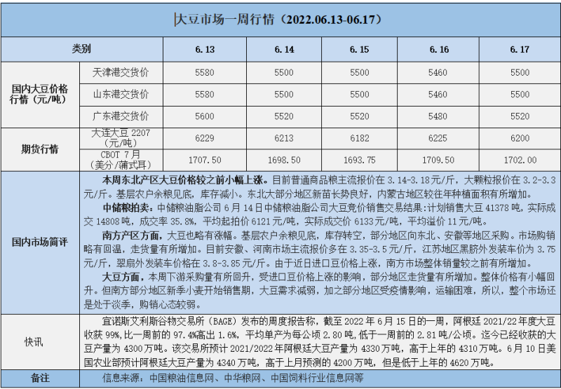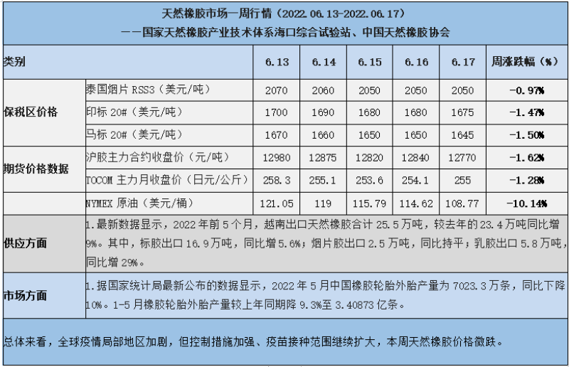 天然橡膠、大豆、玉米市場(chǎng)一周行情(2022.06.13-06.17)
