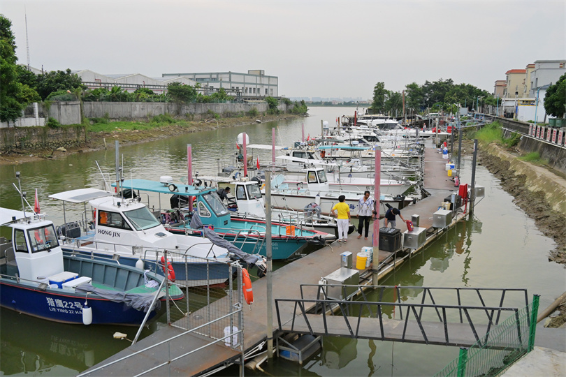 位于磨刀門水道邊上的神溪村“漁家樂”海釣游艇碼頭。 (攝影|繆曉劍)
