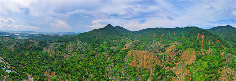 神灣菠蘿產(chǎn)業(yè)園,丫髻山及附近的菠蘿種植場如一塊塊梯田點(diǎn)綴其間。(攝影|余兆宇)