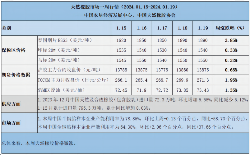 天然橡膠、大豆、玉米市場一周行情(2024.1.15-1.19)