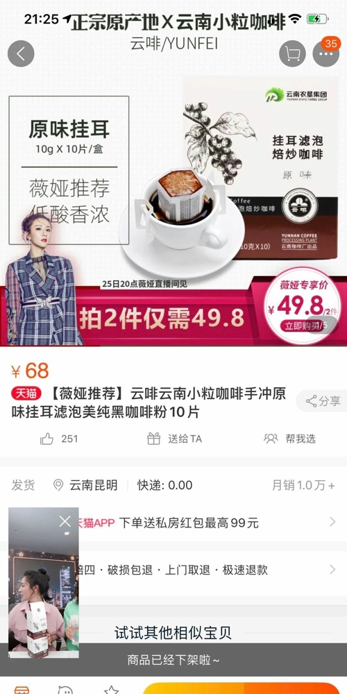 “3噸咖啡5秒售罄” 薇婭攜手影視明星助力直播