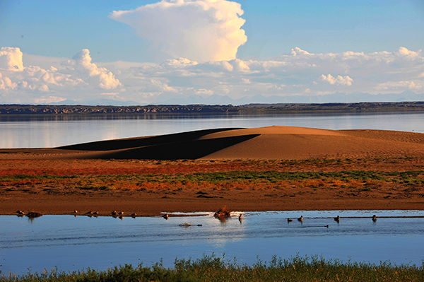可魯克湖發(fā)源于德令哈北部巴音河,流過200多公里后,形成了面積57平方公里、平均水深7米多的湖泊??婶斂撕挥诘铝罟形髂?2公里處,可魯克湖建有碼頭、游艇、摩托艇、帳房餐廳等接待設(shè)施,網(wǎng)魚區(qū)可以看到養(yǎng)殖場的漁工們捕魚,是柴達(dá)木盆地里的一個(gè)好地方。托素湖是蒙古語“酥油湖”的意思,位于德令哈市西南40多公里處的懷頭他拉鄉(xiāng)以南,是典型的高原內(nèi)陸咸水湖,占地面積約1876公頃,托素湖湖面遼闊、湖岸開闊,無遮無攔,風(fēng)平浪靜時(shí),湖面煙波浩淼,水天一色,蔚為壯觀,天氣變幻時(shí),湖水浪濤洶涌,浪花飛濺,拍岸有聲,動(dòng)人心魄。
