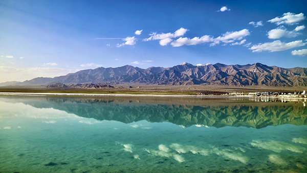 大柴旦翡翠湖位于青海省海西蒙古族藏族自治州境內(nèi),形態(tài)迥異、深淺不一的鹽池宛如一塊塊晶瑩剔透的“翡翠”。約6平方公里的“翡翠湖”名為大柴旦湖,是原大柴旦化工廠鹽湖采礦隊(duì)采礦區(qū),經(jīng)多年開采形成采坑,變成了如今美麗的“翡翠湖”。站在湖邊,宛若鏡面般的湖面倒影著藍(lán)天白云和皚皚雪峰,宛如仙境。