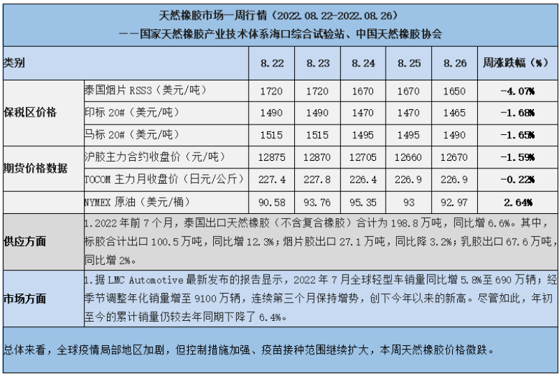 天然橡膠、大豆、玉米市場(chǎng)一周行情(2022.08.22-08.26)